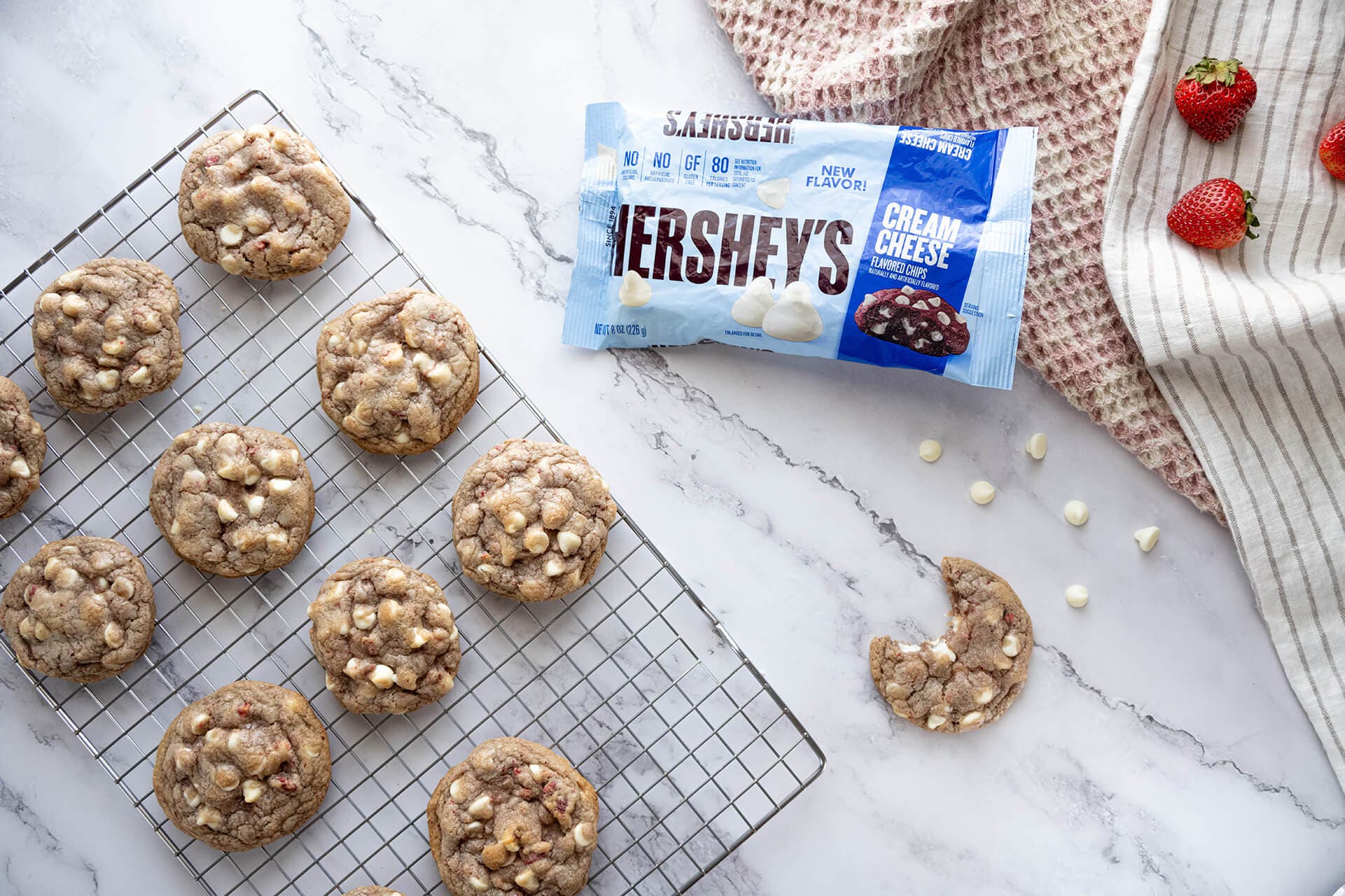 Sweeten your day with these irresistible Strawberries and Cream Cookies! Each soft and chewy cookie combines the creamy richness of HERSHEY’S Premier White Creme Chips with bursts of fruity flavor from freeze-dried strawberry pieces. Baked with love, these cookies are a treat that’s sure to melt hearts!